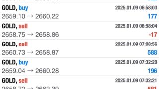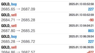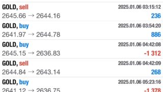 本日のGOLDトレード結果、設定10時~17時18時過ぎに利確、マーチン倍率少し厚目に設定していた分利確が遅れた感じ・・+2,351